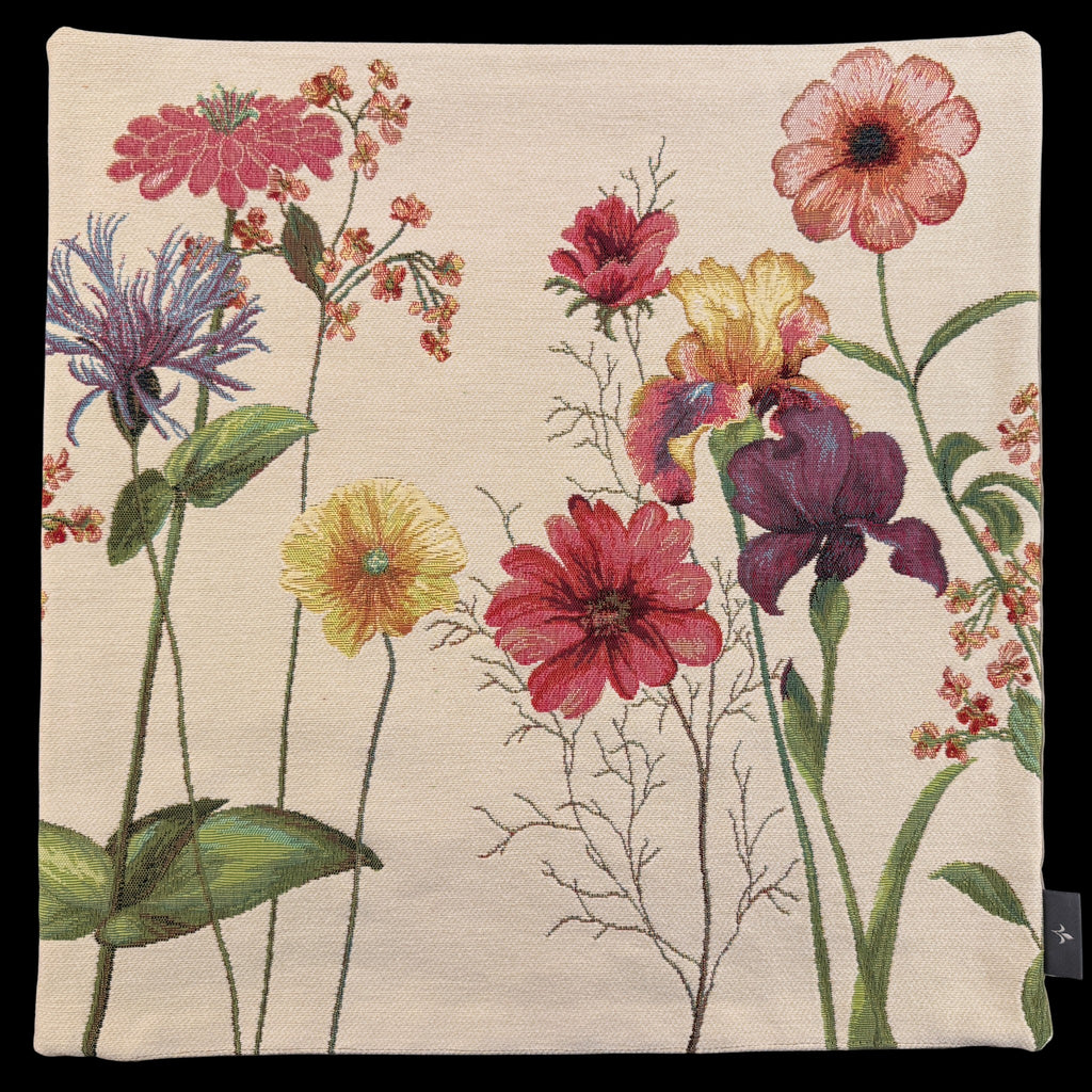 This is a woven tapestry pillow with solid color backing and bottom zipper.  French made Insert is also included.
